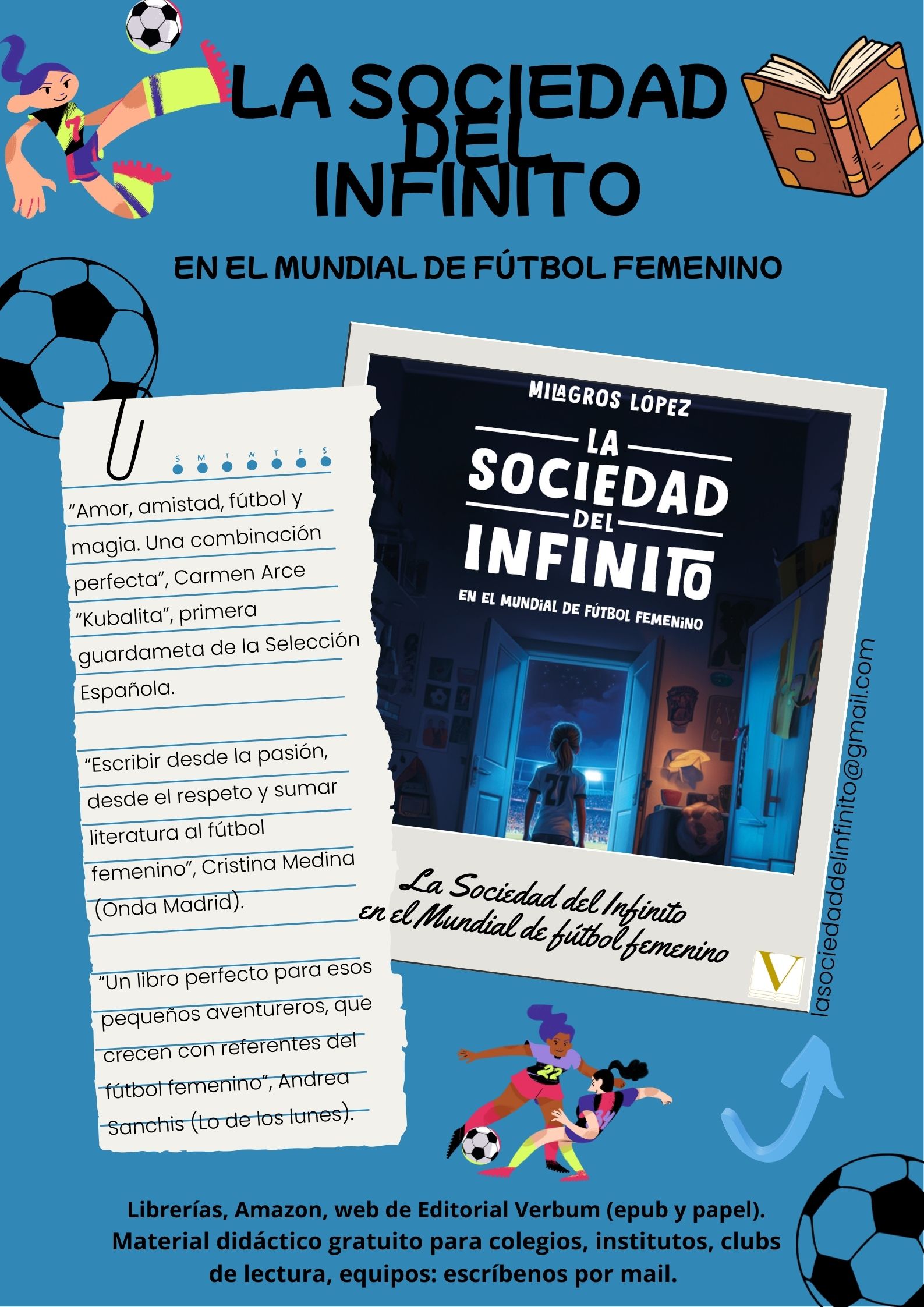 La Sociedad del Infinito en el Mundial de fútbol femenino (Editorial Verbum) llega a Estados Unidos y países de Hispanoamérica (México, Argentina, Ecuador, Costa Rica, Colombia, Paraguay…) a través de Amazon.com.